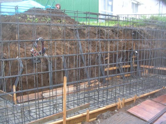 擁壁部分の鉄筋工事を行いました。
